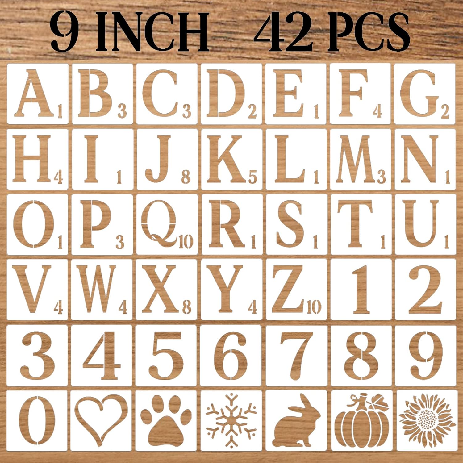 Specifications:Material: PET plasticColor: WhiteQuantity: 42 piecesSize: as shown in the pictureWhy Choose Our Letter Stencils for Crafts Reusable?1.Translucent material, you can clearly see the painting pattern through the journal stencils template. Endless possibilities of customized words to inspire and create any DIY art project you want;2.Large enough patterns, moderate hardness with creative journaling stencils, no break, and avoid scratch.3.Ideal Choice for Gift----The letter stencils set can be offered as a gift to teachers, and your friends.4.The letter templates are washable and reusable, you can use them with many different colors and as many times as you want, they are easy to clean after using, saving your time and energy, then you can store them in drawer conveniently.5.Wide Application-These stencils are ideal for DIY art projects, handmade crafts, painting, home decoration that can be applied to most flat surfaces including the wall, furniture, table, cabinet, tiles, floor, rock, canvas, fabric, metal, glass, wooden signs, bin, cards, album, wedding craft, etc.How to use?1. Clean the surface you wanna paint2. Fix the edges with adhesive tape to avoid bleeding3. Paint with brush,spray or pen4. Remove the stencil by lifting up one corner lightly5. Wash it immediately with soap water
