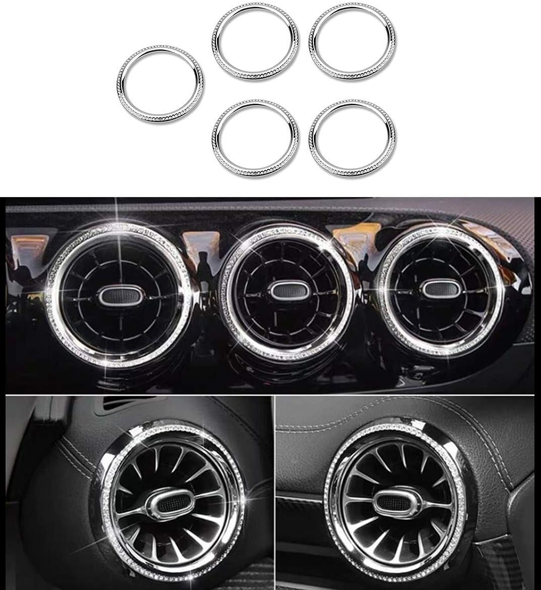 Compatible with:Fit for Mercedes Benz A Class a200 2019-2024 B Class b200 2020-2024 GLB 2019-2024 CLA200 CLA260 2020-2024 GLA250 2020-2024. Only applicable to the above models and corresponding production year models, not suitable for other models. Please refer to the compatible models before placing an order. Design: 1:1 original car measurement production. Sales item:Air vent knob cover (5 pcs/set). Made from high-quality zinc alloy and rhinestones,it can bring a unique decoration to your car. These rhinestones will shine like diamonds, glittering. Easy to install: Clean the installation area before installation. When the temperature is low, use a lighter or blower to heat the 3M tape, the effect will be better.