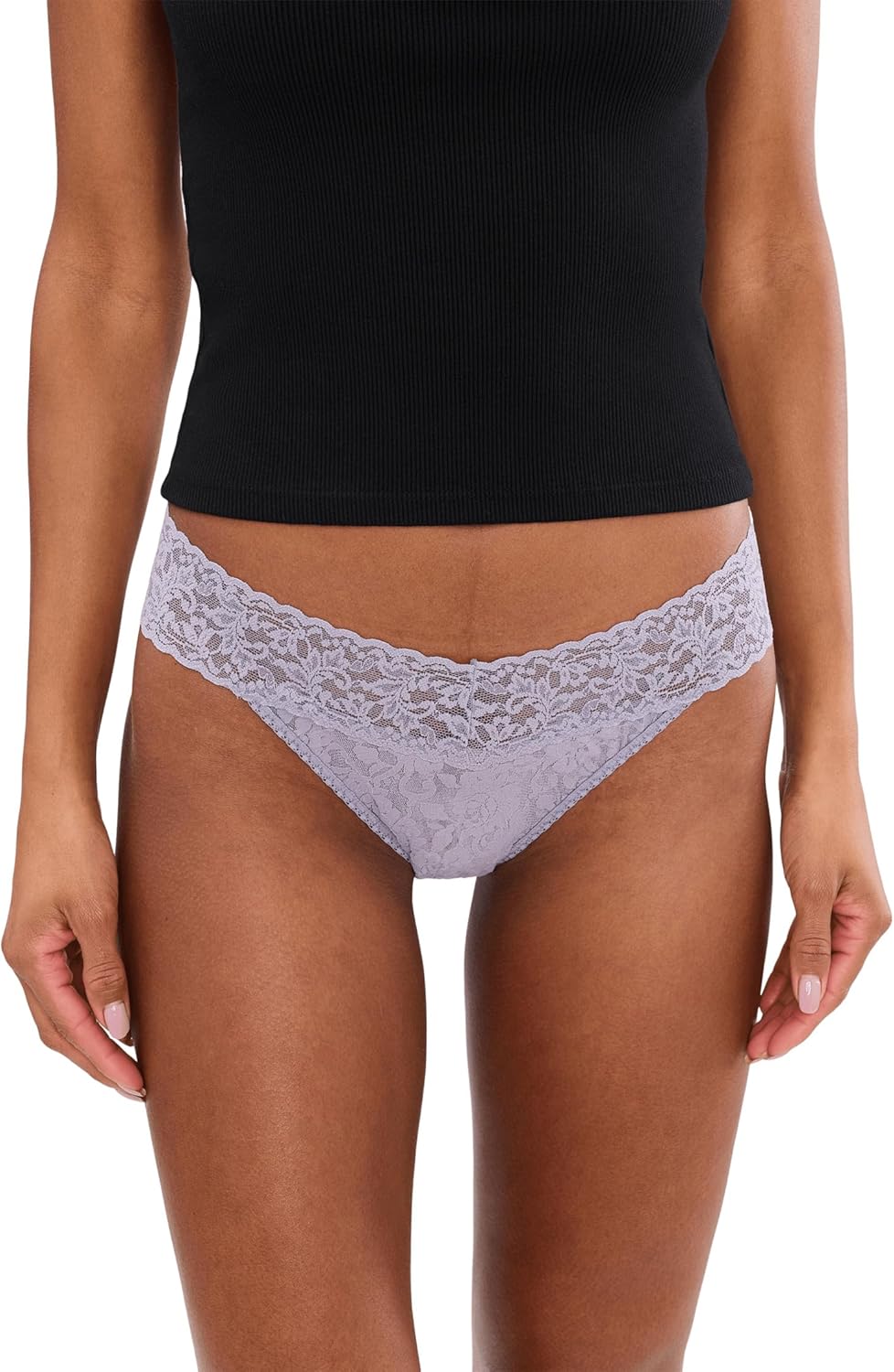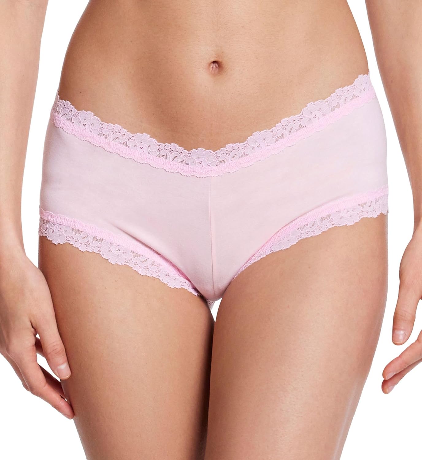 Known for providing more comfort and coverage than a traditional panty. These panties have a medium rise and cover the hips and backside with delicate lace trim around the waistband and leg.