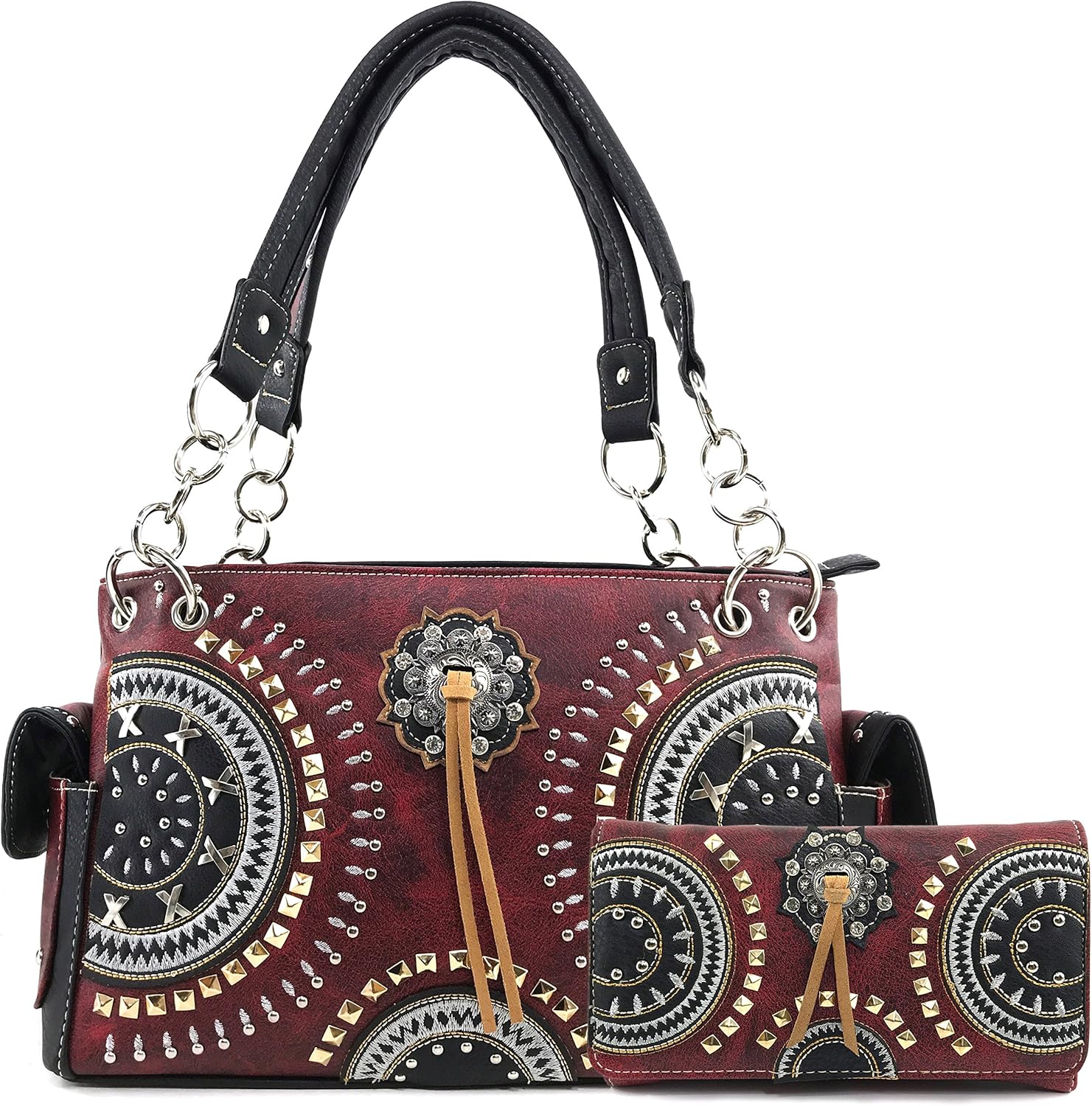 Justin West Native American Circle Mountain Gold Studs Embroidered Studded CCW Concealed Carry Shoulder Purse Handbag