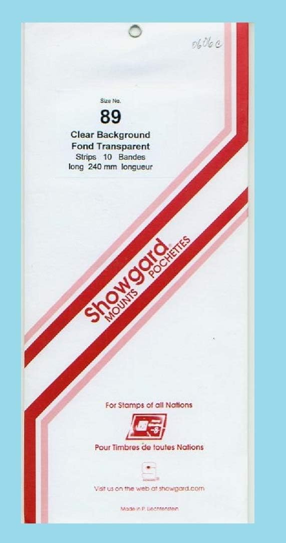 Showgard Strip Stamp Mounts allow you to display your stamp collection in a neat and organized manner. These mounts are made from oriented polystyrene and are free of chemicals that may be harmful to postage stamp paper, ink or gum. The clear, archival quality plastic film is designed to protect your stamps from dirt, dust, and other contaminants while providing maximum visibility. The mounts are available in various sizes to accommodate a wide range of stamp sizes, and they can be easily cut to fit your specific needs. The adhesive used in the mounts is pressure-sensitive and pH-neutral, ensuring that it won't damage your stamps or leave any residue behind. Showgard Strip Stamp Mounts are perfect for collectors who want to showcase their stamps in an aesthetically pleasing and organized way. Whether you're a beginner or a seasoned collector, these mounts are a great way to protect your stamps and keep them looking their best.